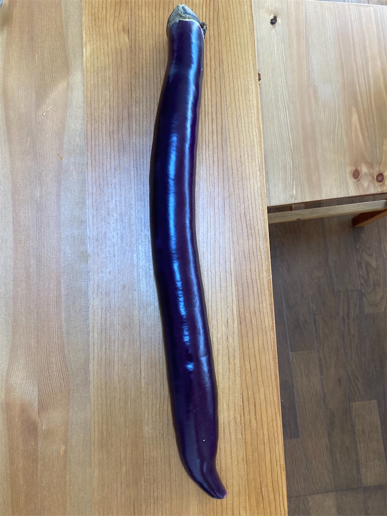 話は変わるが,僕がその大きなナスを見た時の所感としては,「なんだよ。欲求不満の表れじゃないの?一発お見舞いしてやらないと!」だった。そして,少しモヤモヤ感がありながら,普段通りに就寝したところだったが,夢にまでその大きなナスが登場するとは予想外だった。
