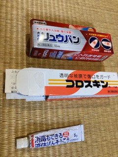 ①~③のすべてにからみつつも、③がメインの原因ということを考えながら、ドラッグストア系を廻っていくうちに、目に飛び込んできたのが、画像の液体絆創膏たちであったのです。液体絆創膏ならば・・・・・・・・・。